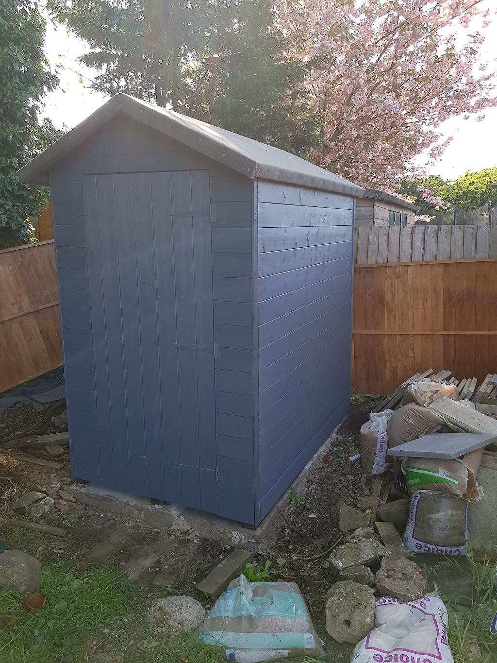 Shed bases installed, Sheds Erected and old Sheds taken down and removed.